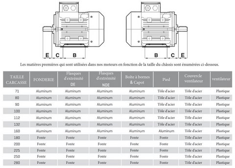 En fabriquant ces flasques et le groupe d'arbres du rotor modifications, l'utilisateur peut avoir un moteur dont la boîte à bornes se trouve du côté opposé à l'entraînement tout en respectant la distance C conformément aux normes.