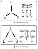Les moteurs doivent être connectés en étoile ou en triangle en fonction de la tension nominale indiquée sur leur plaque signalétique et de la tension de réseau à laquelle ils seront connectés. Pour une alimentation en 400 V entre phases, les moteurs ayant une tension nominale de 230/400 V doivent être connectés en étoile et les moteurs ayant une tension nominale de 400/690 V doivent être connectés en triangle.