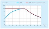 Les moteurs ELK standard conviennent aux entraînements à vitesse variable. La plage de fréquence à laquelle le moteur peut être entraîné avec son ventilateur est indiquée ci-dessous par une ligne bleue.