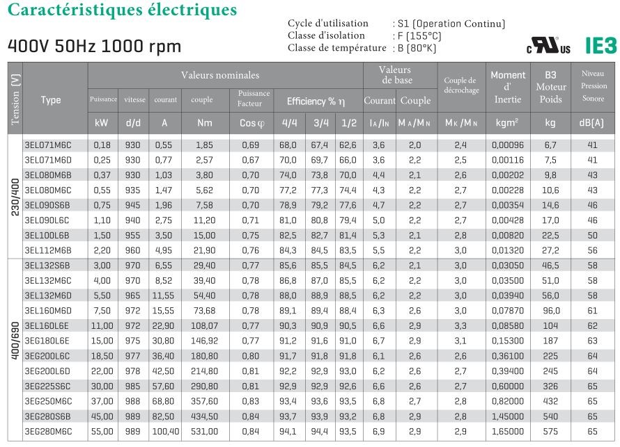 MOTEUR IE3 - 1000 tr/min - 6 poles