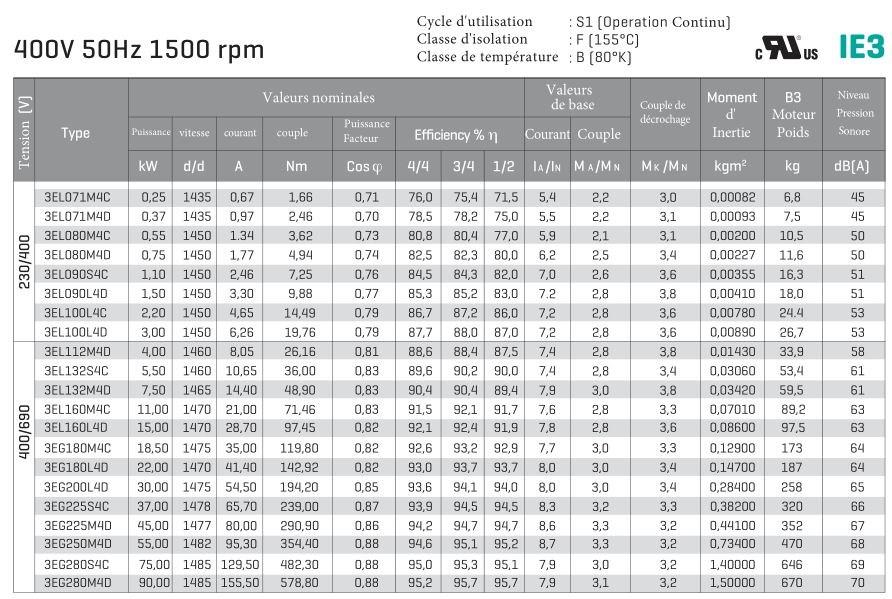 MOTEUR IE3 - 1500 tr/min - 4 poles